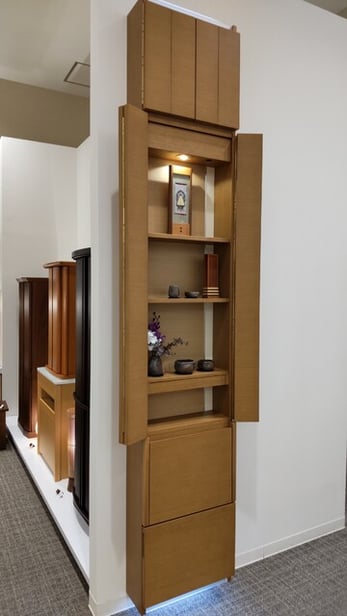 本日は、質感が異なる2種類のブラックが特長で、壁掛けタイプの現代仏壇「パッサート」を紹介させていただきます。 扉を閉じた顔は、マットブラックの中にまんまるピカピカの漆黒が収まり、シックで落ち着いた印象です。 「鏡のような黒」 幾重にも塗り重ねたその仕上げは、 一点の塵も許さない職人の魂さえ感じます。...