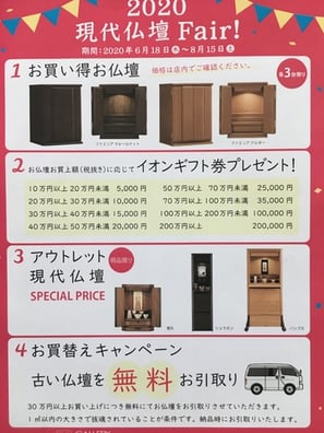 ただいま、「2020現代仏壇Fair!」を開催中です。