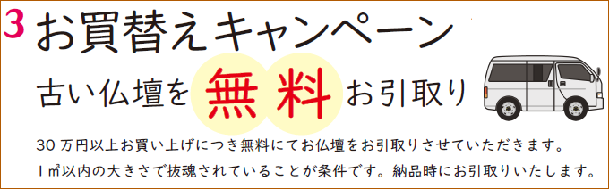 ※お引取に際し、お仏壇の抜根をお願いしております。※※お支払総額10万円以上の方に限らせていただきます。