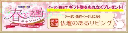 クーポンをキャンペーン実施店舗でお見積り前にご提示いただき、税抜5万円以上の現代仏壇および現代仏具を購入された方が対象です。