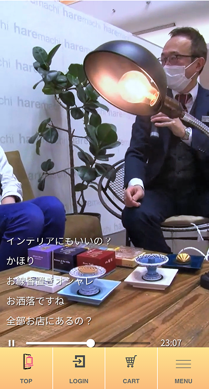 「ピスタチオモテ小物認定ライブ」の中で当店からは、京都「松栄堂」のお香を紹介いたしました。