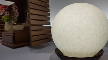 この球体は和紙でできており、鳥取県の手すき「因習和紙」で形成されています。