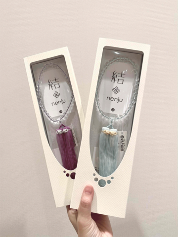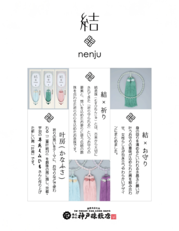 神戸珠数店 オリジナル念珠「結」は古来から大切にされてきた「祈り守られる」というお守りの要素と、想いを込めたお参りに使う伝統の珠数を合わせた、「祈り」の思いをコンセプトに込めたお念珠です。